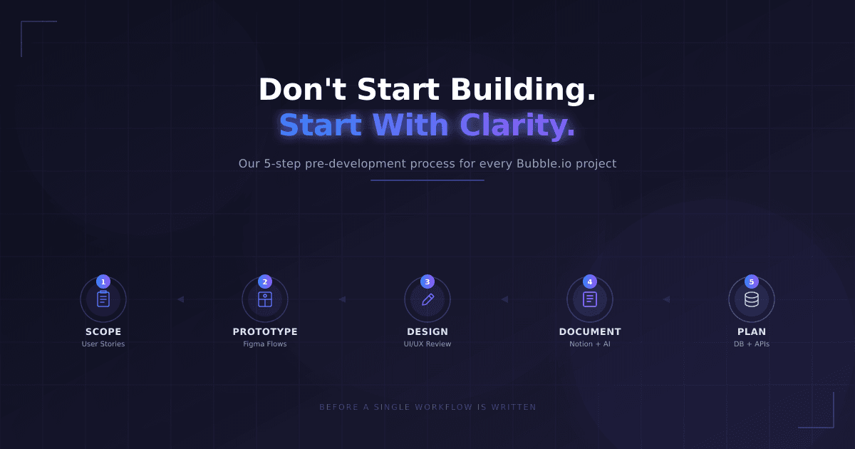 That's why we created a structured pre-development process that we run with every single client before we open Bubble. It takes roughly 2 weeks, and it saves months of frustration down the line.